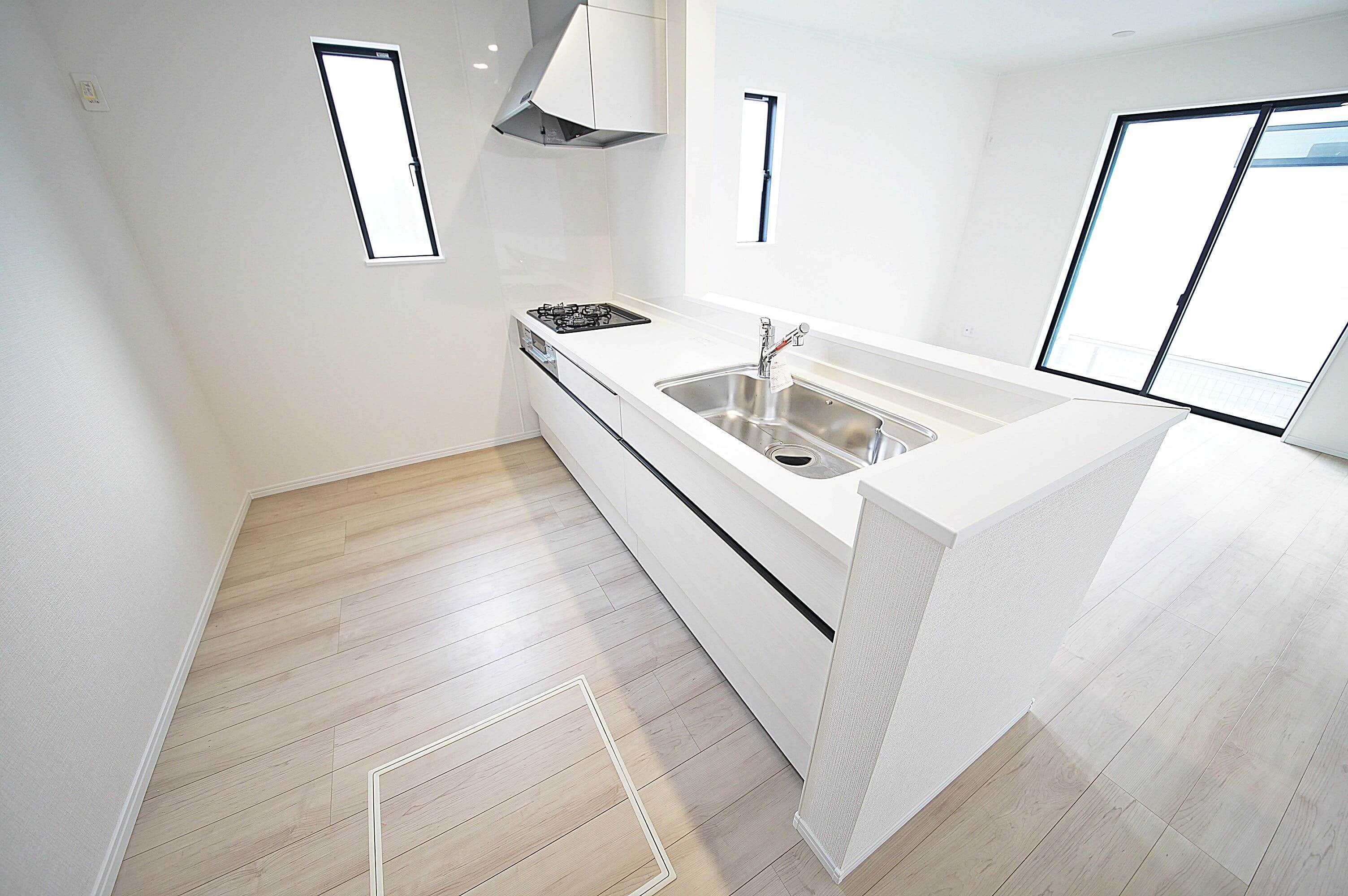 ご家族の顔が見渡せる安心の対面キッチンは浄水器付きです