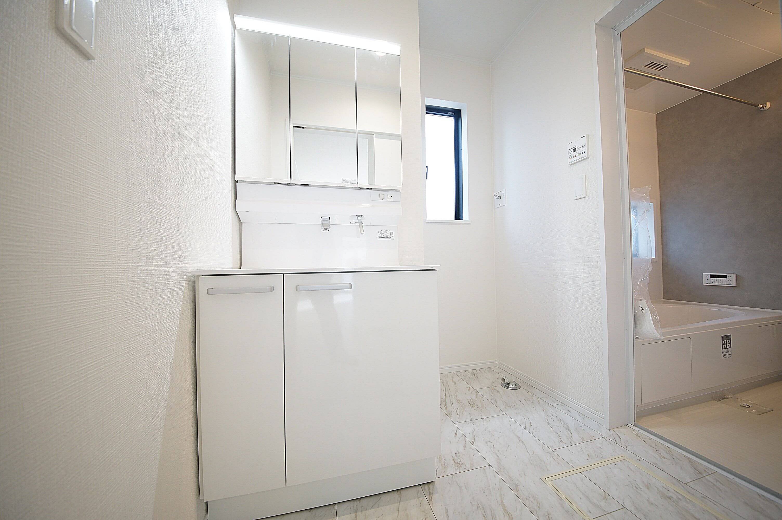 白を基調とした洗面室は清潔感がありますね