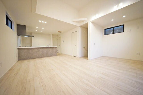<2号棟 リビング>床暖房を備えた約20帖のLDK!家族団らんのひと時をあたたかく過ごせます